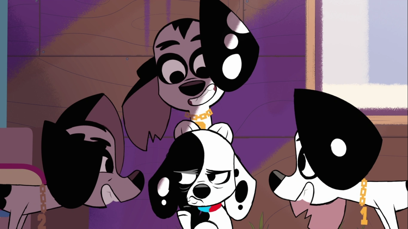 - Despite being three of the twenty characterized Dalmatians in the series, the Dimitris have been distanced or even excluded from the rest of their family in promotional material. For example, they are absent from the theme song, most of the key art for the series (including the Dalmatian family portrait), and are listed considerably further from the main Dalmatians in "In the House."